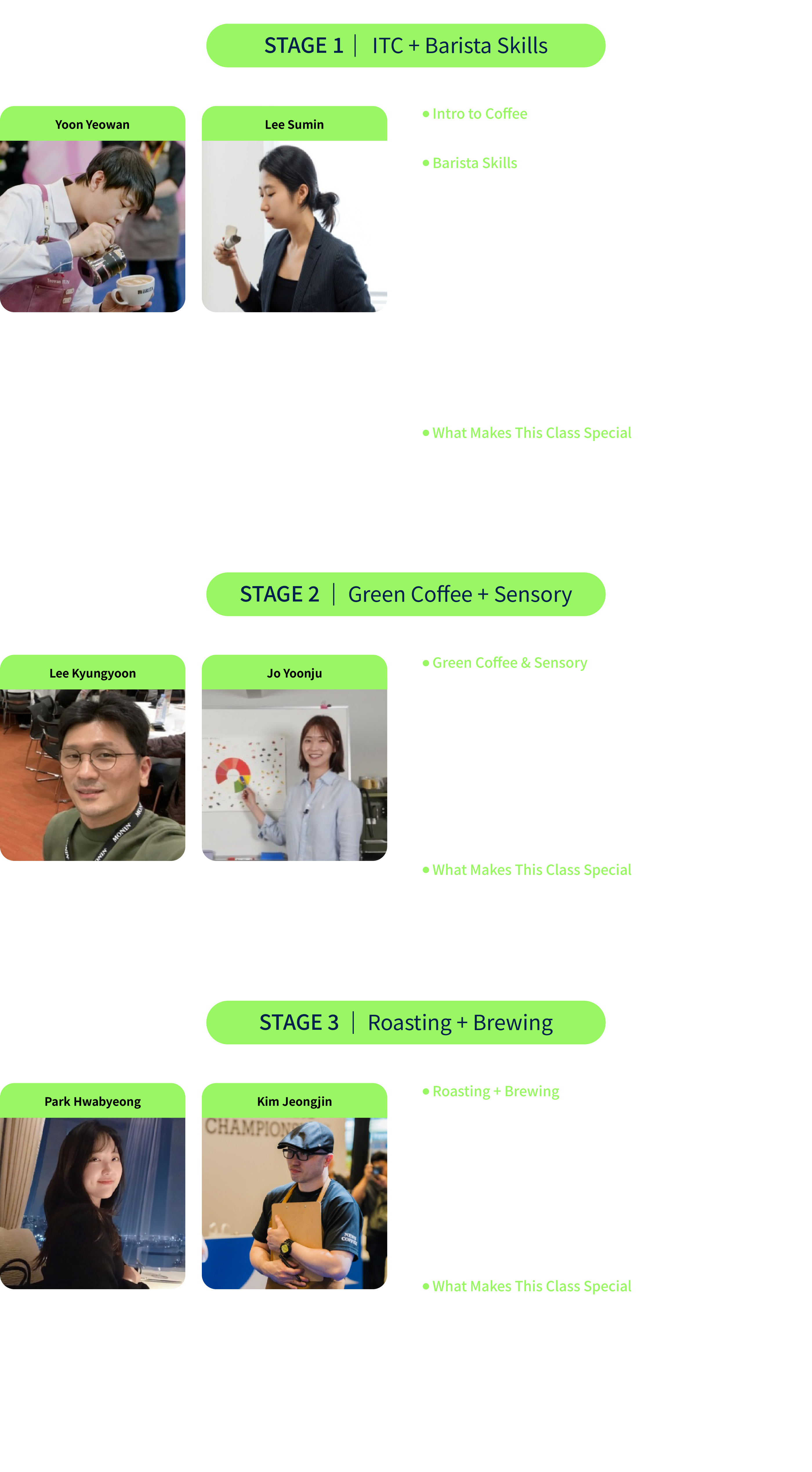 | 10:00 - 12:00 | STAGE 1 | [ Unfolding the Map of the Coffee World ] Introduction to Coffee × Barista Skills Mission : Learn the origins of coffee and begin your journey at the fingertips of a barista. |