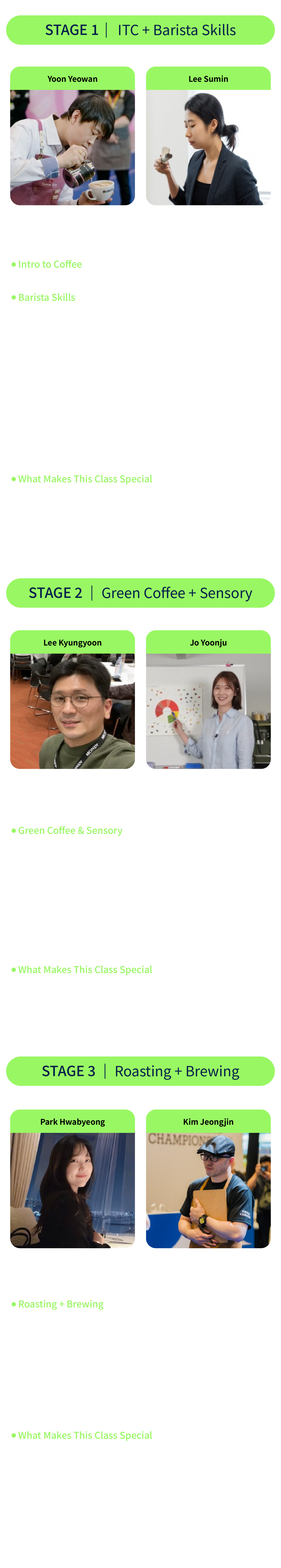 | 16:00 - 18:00 | STAGE 3 | [ Completing Flavor with Fire and Water ] Roasting X Brewing Mission : Create coffee flavor with the heat of fire and the flow of water. |