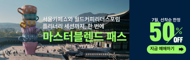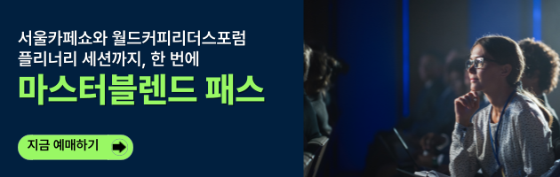지금, 가장 스마트한 선택 아시아 No.1 글로벌 지식플랫폼, 월드커피리더스포럼 마스터블렌드 티켓은 7월 31일까지 얼리버드 혜택 중 → 4일간의 서울카페쇼 + 포럼 플리너리 세션을 함께 경험하세요! |