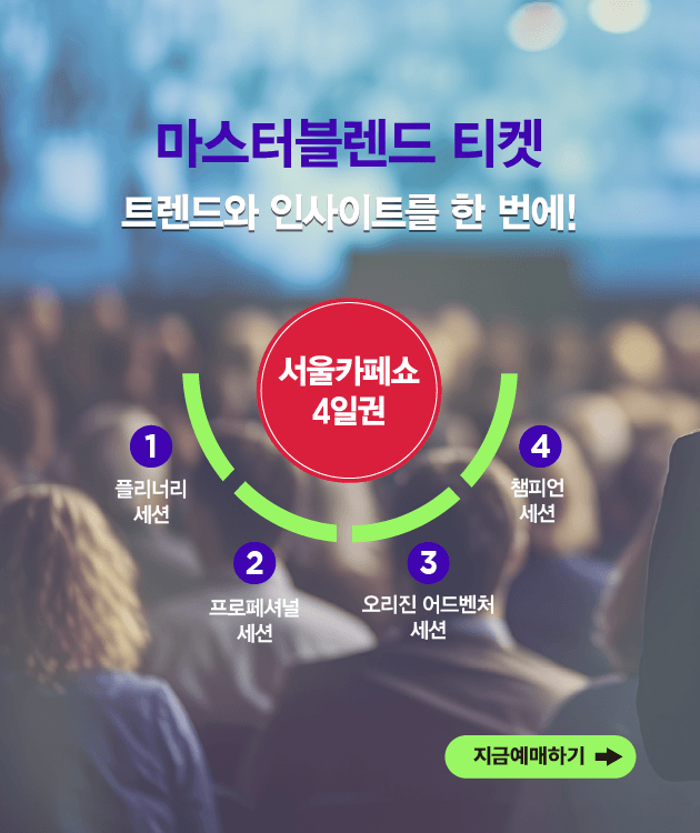 마스터블렌드 티켓 포함 혜택커피 산업의 미래를 선도할 핵심 인사이트와 특별한 경험을 모두 담았습니다.